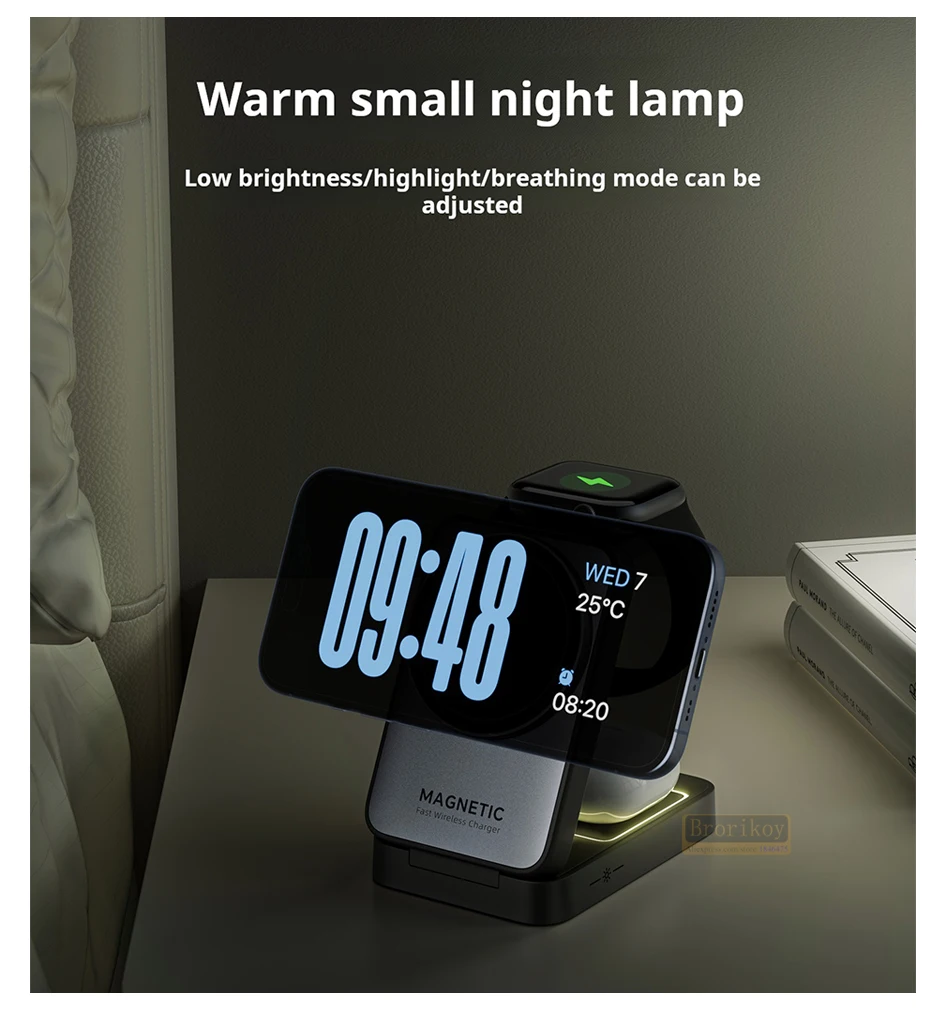 - Foldable Design: The foldable magnetic charging section allows the charger to be used flat or as a stand, making it perfect for everyday use and on-the-go charging.