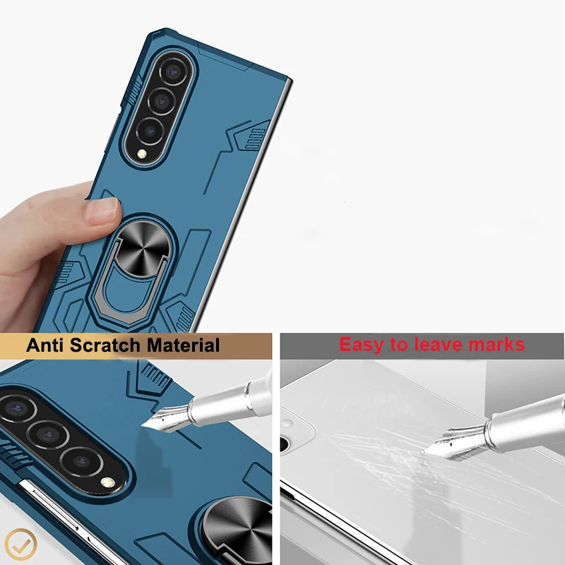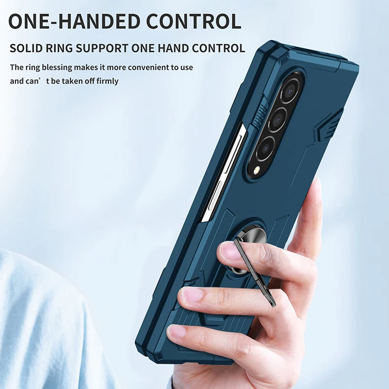 Protect your Samsung Galaxy Z Fold with the Anti-Drop Hinge Armor Case, designed for ultimate durability and convenience. This shockproof cover features a sturdy metal ring stand, ensuring secure grip and hands-free use, while dual-layer protection keeps your device safe from drops, scratches, and dust. Perfect for daily use, this lightweight, non-slip case offers water resistance and a sleek design that complements your device.