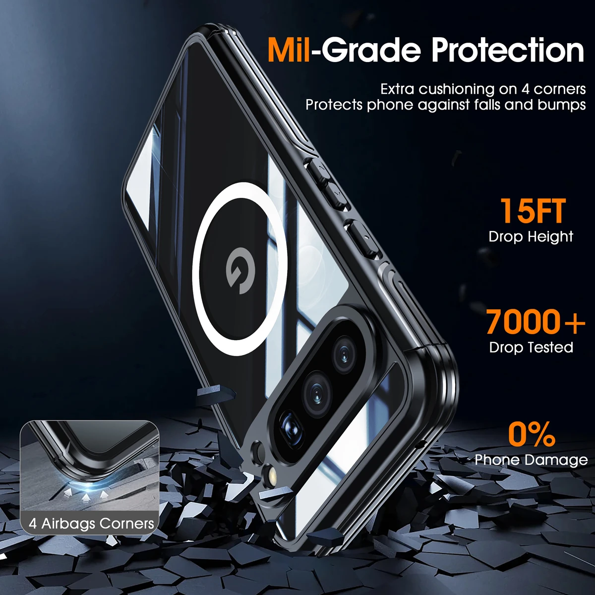 Google Pixel Pro XL Shockproof Dual Layer Glass Case with Mag Safe & Wireless Charging Compatibility – Clear Protection Cover - TAG
