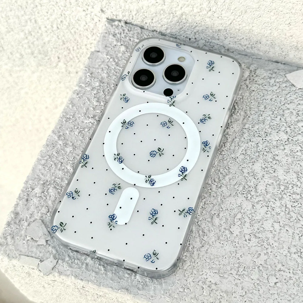 Lovely Floral Mag Safe Card Pocket Wireless Charging Phone - Wave Point IMD Cover - TAG