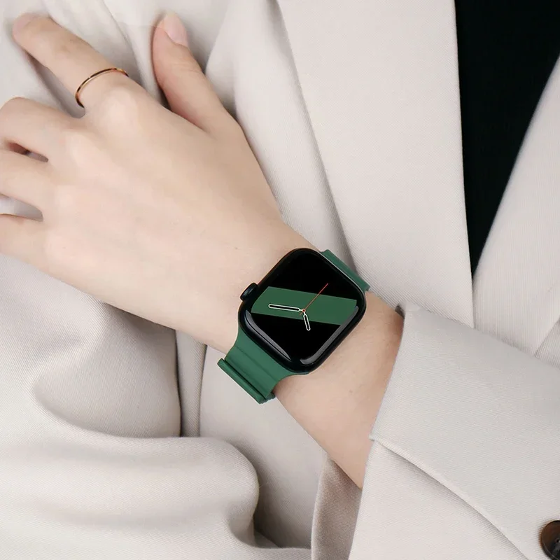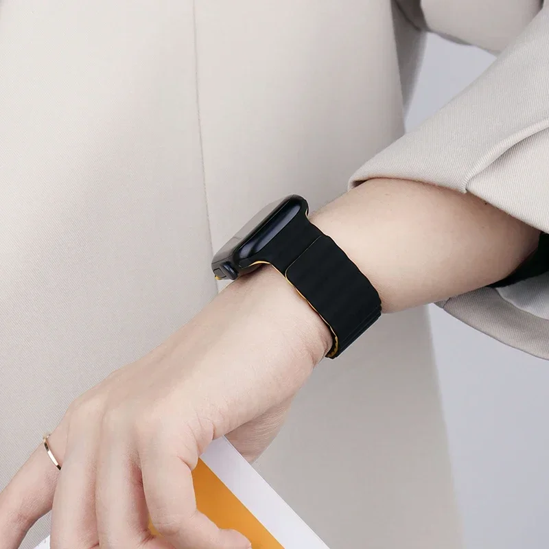 Upgrade your Apple Watch with the Magnetic Silicone Sport Strap, designed for the Apple Watch Ultra, SE, and Series models. Crafted for fitness enthusiasts, this band ensures a secure fit, is easy to clean, and delivers unmatched comfort during your most intense workouts or daily activities.