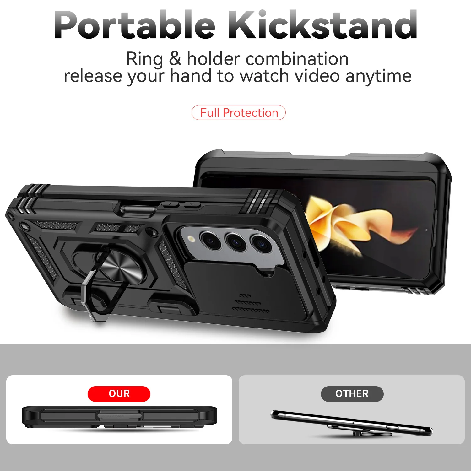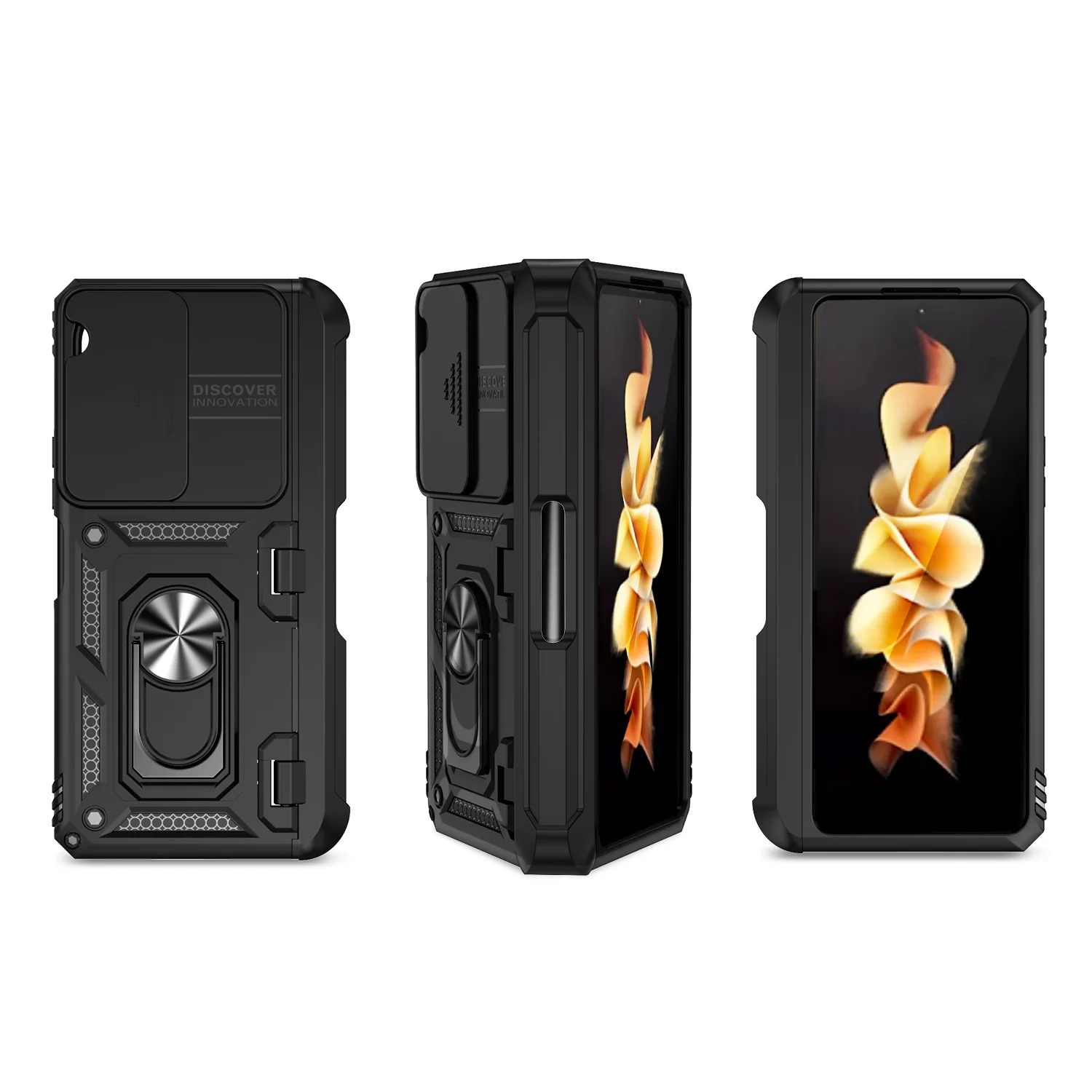 Protect your Samsung Galaxy Z Fold in style with this premium dual-layer case, designed for durability and functionality. Featuring a window camera protector, a built-in pen slot, and a magnetic ring car holder, this case combines sleek design with ultimate protection. Keep your phone safe from dust, scratches, and fingerprints, all while maintaining full access to its features.