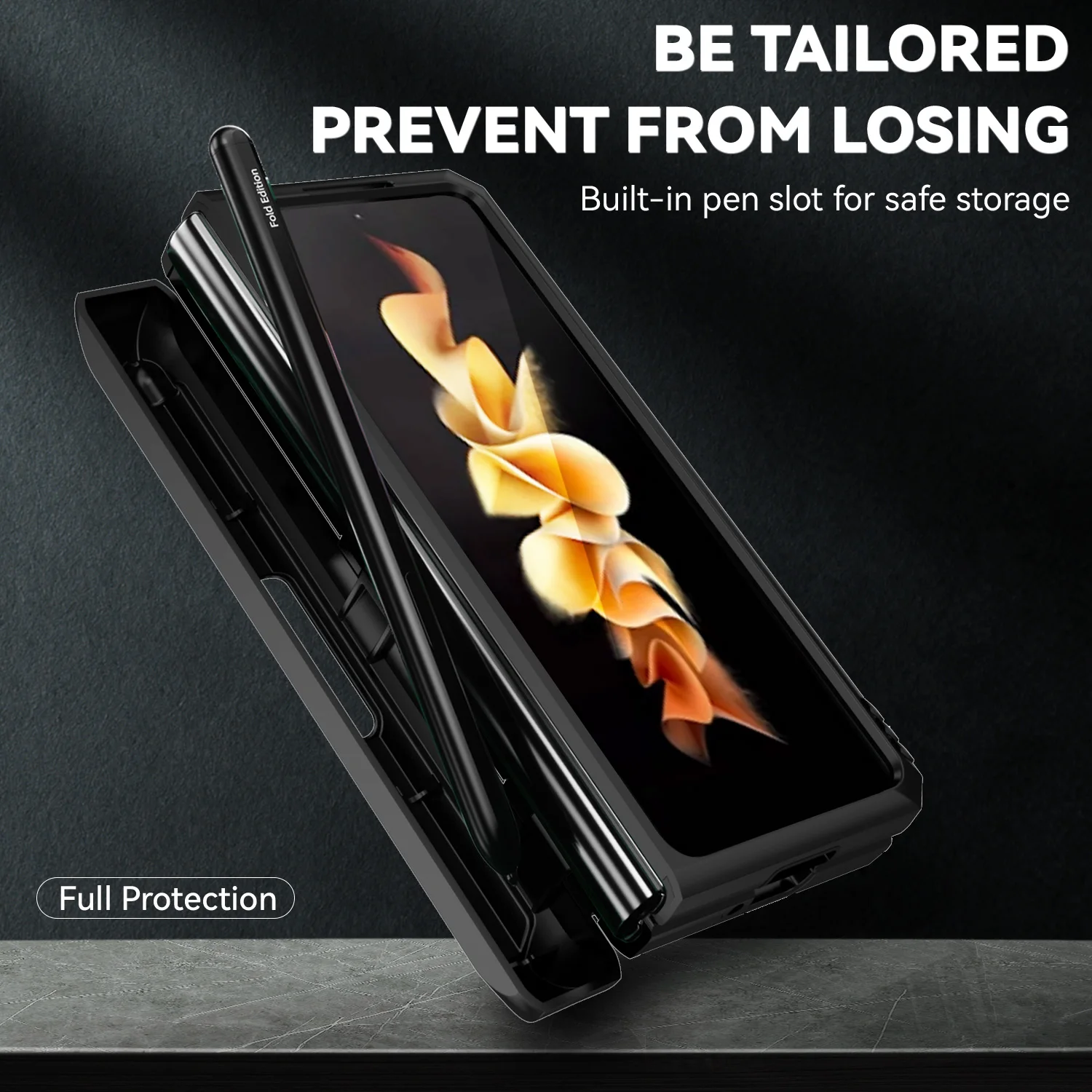 Premium Window Camera Protector Hinge Case for Samsung Galaxy Z Fold with Pen Slot & Magnetic Ring Car Holder - TAG