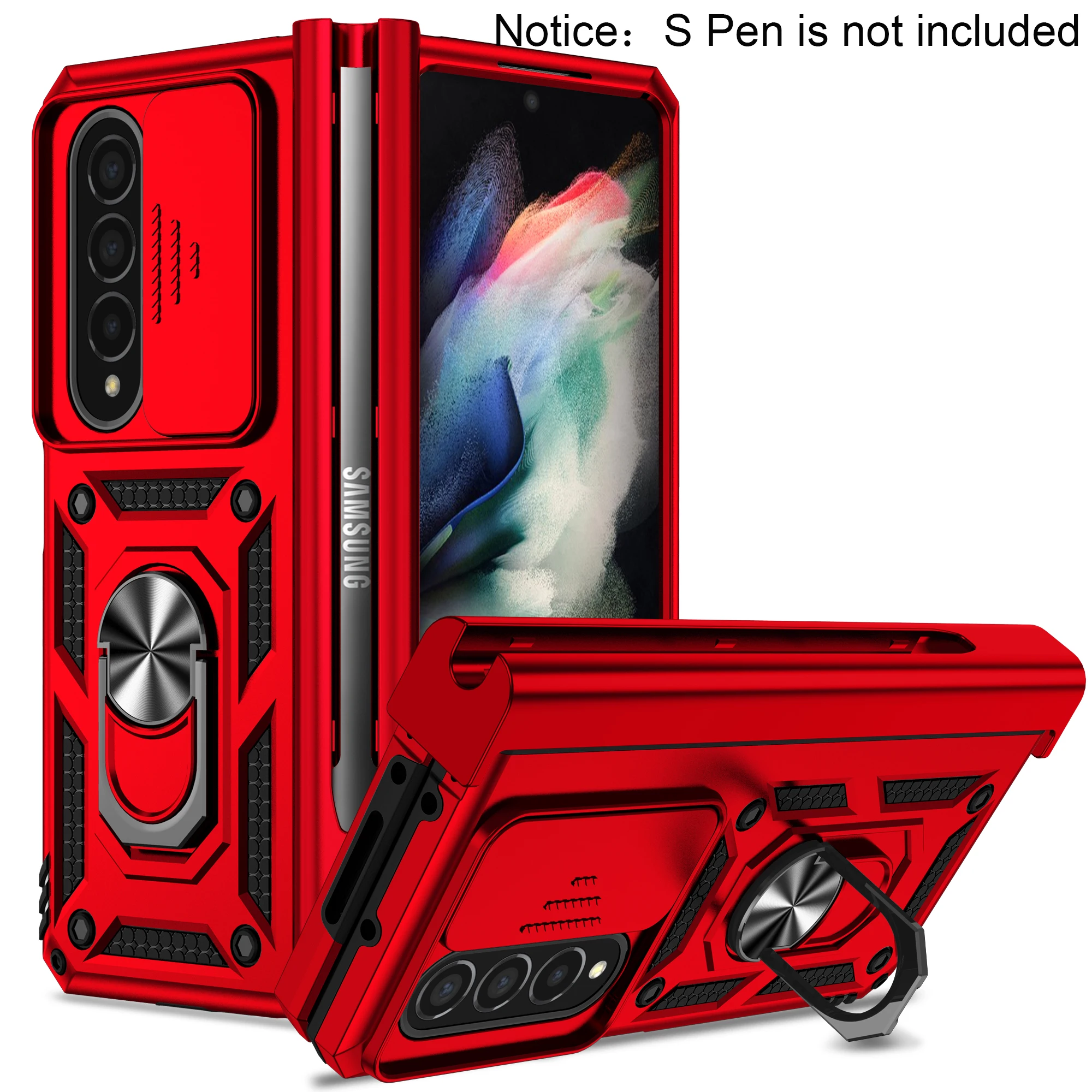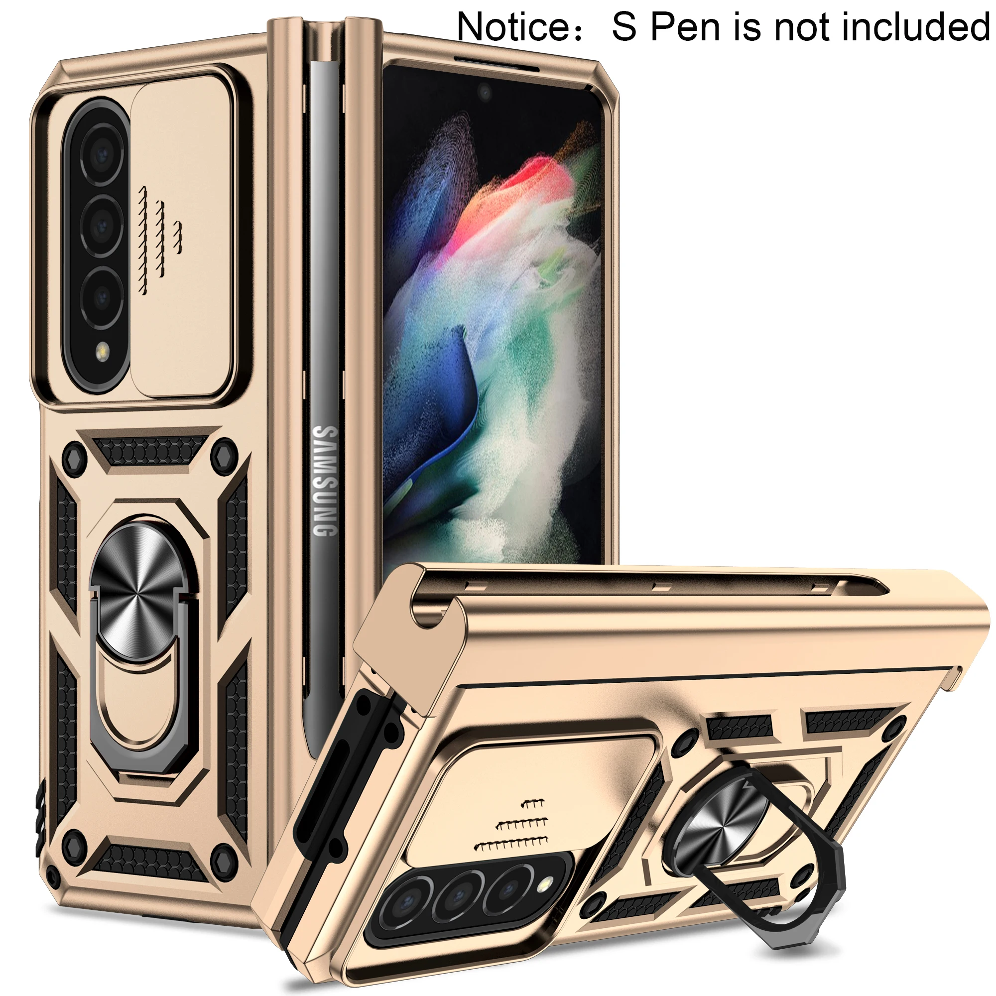 Premium Window Camera Protector Hinge Case for Samsung Galaxy Z Fold with Pen Slot & Magnetic Ring Car Holder